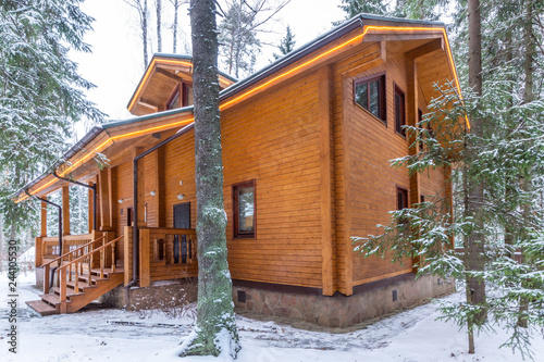 Modern Log Cabin Wooden Vacation Home Winter Timber House With