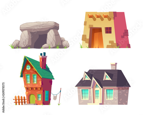 Human Homes From Prehistoric To Modern Time Cartoon Vector